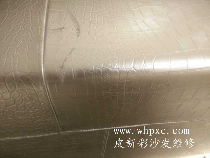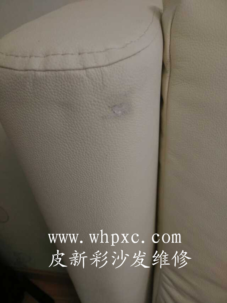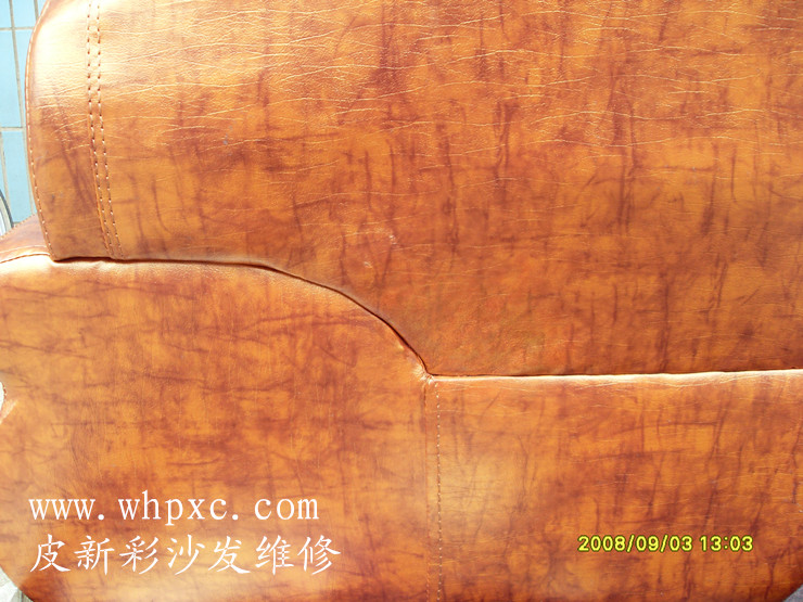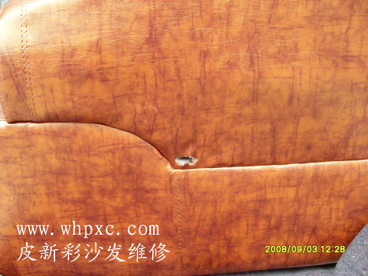 沙發破洞維修,沙發破洞連里面的海綿都沒有了,修補是先把海綿填補好再拼接皮子,最后再上色做紋套花,皮新彩沙發維修熱線13995508166