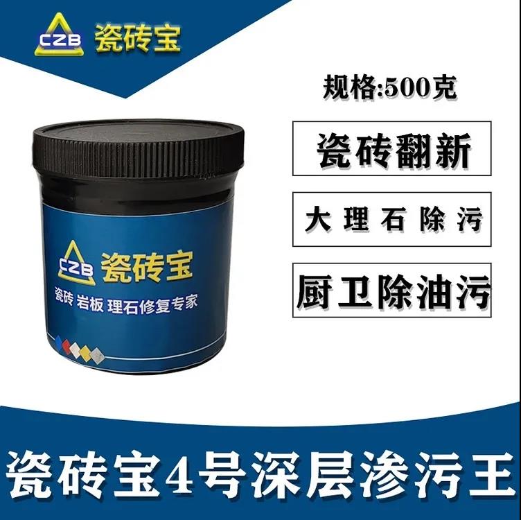 4號瓷磚寶的滲污清洗劑,可以把劃傷陳舊瓷磚清洗得光亮如新。