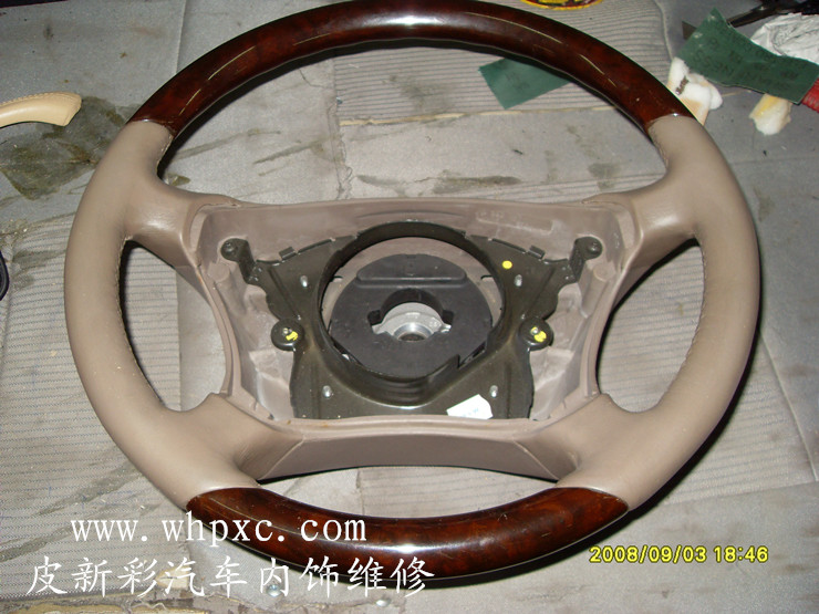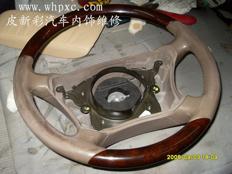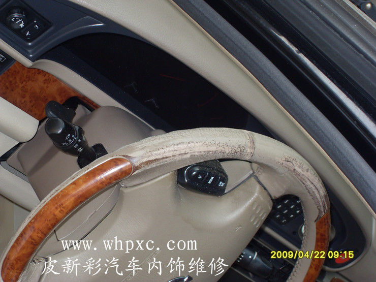 汽車(chē)方向盤(pán)翻新,真皮方向盤(pán)最容易脫色,因?yàn)榉较虮P(pán)摩擦得多對(duì)上色材料要求很高,要耐濕擦附著力強(qiáng)的材料,上色之后要做好固色和手感處理,皮新彩汽車(chē)方向盤(pán)內(nèi)飾維修熱線:13585956565