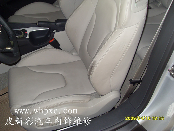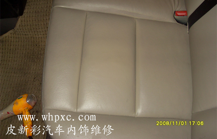 汽車坐墊維修翻新,汽車坐墊破損一般是煙頭燙破或鑰匙劃破的,汽車坐墊摩擦的阻力太大,要用強粘成膜劑上色,還要做好固色手感處理,皮新彩汽車坐墊維修翻新:13585956565